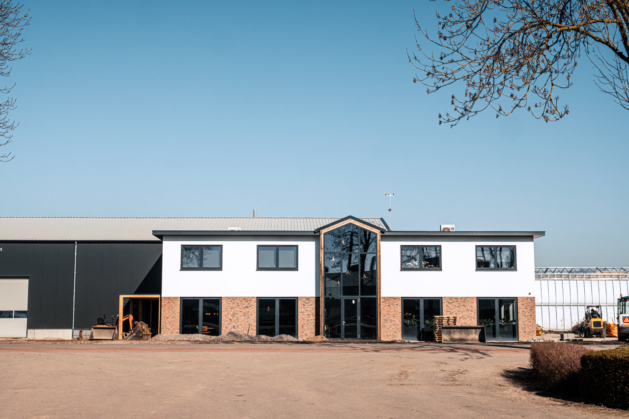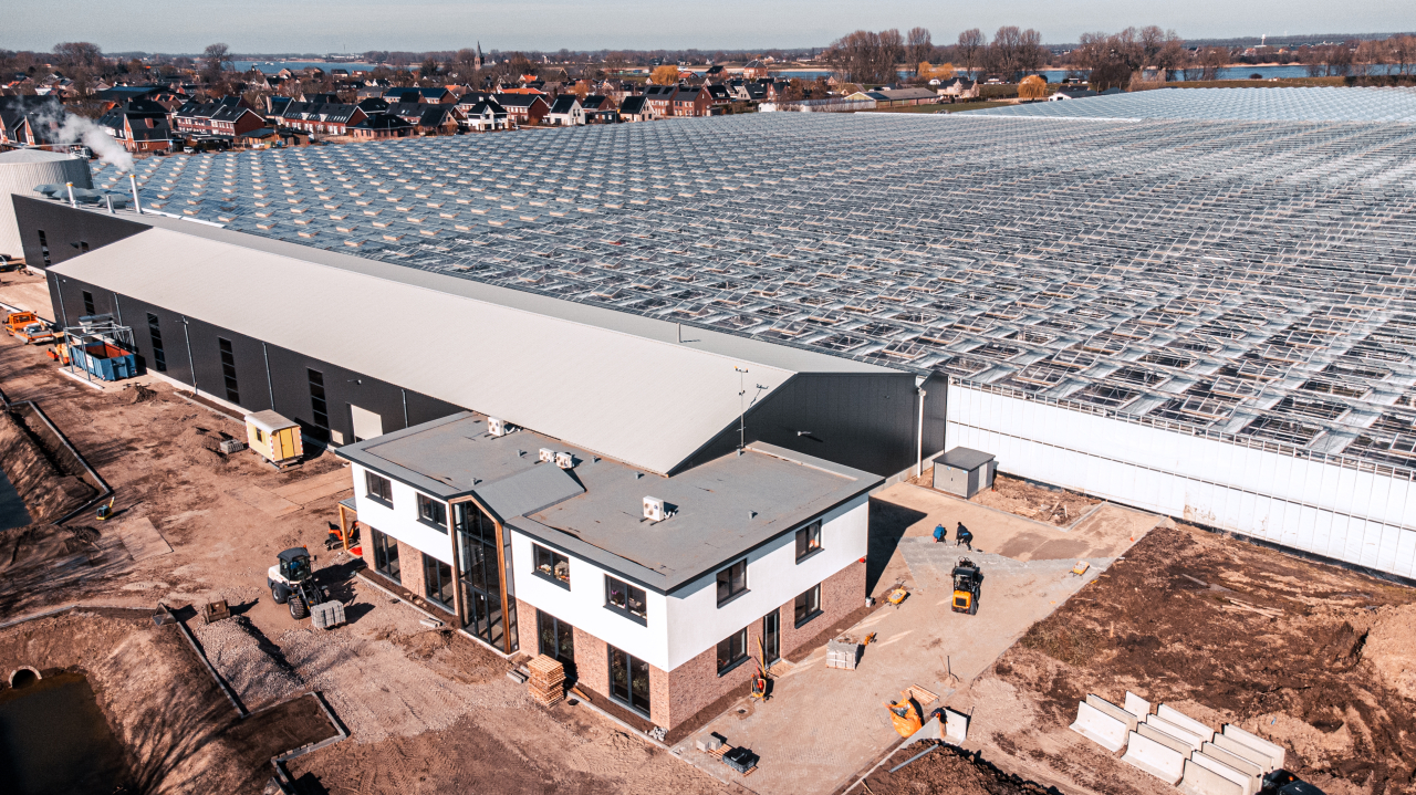 Wij hebben bijgedragen aan de bouw van een modern bedrijfspand met laaddock, kantoor en sociale ruimte met een oppervlakte van maar liefst 2.750 m2. Eraan vast een kassencomplex van bijna zeven hectare!